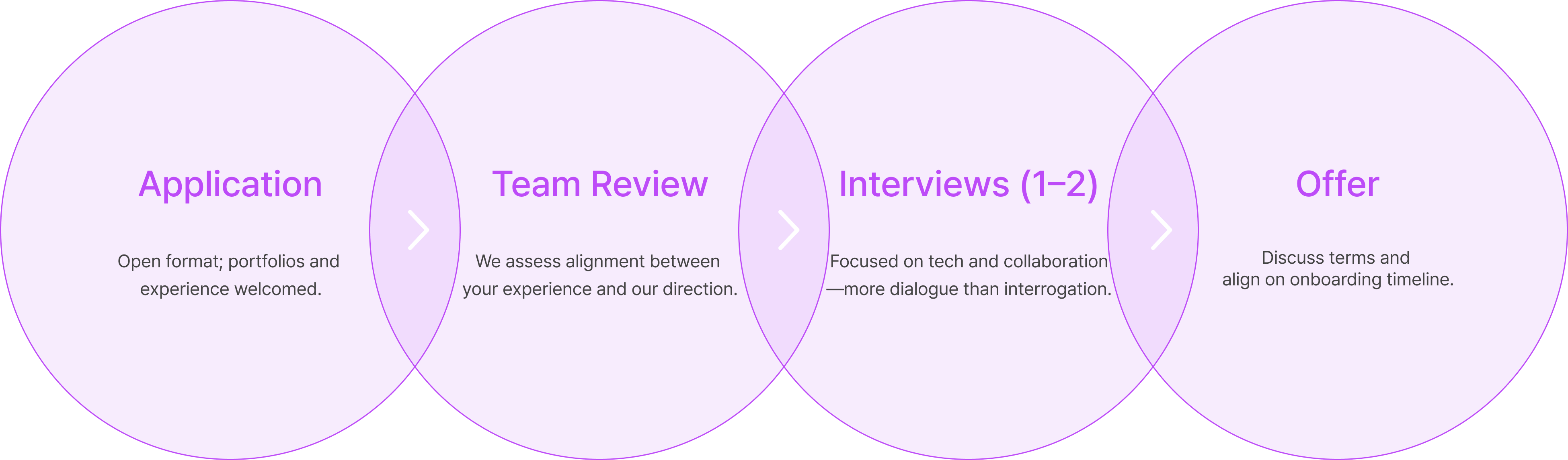 We’re not chasing dazzling résumés. We are looking for your authentic “why.” “Why do you want to do this work?” “Why does this technology speak to you?” “Why build technology for people?” If your reason is clear, we’ll find each other.